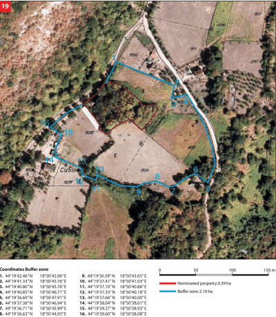 To determine the final number of decorated tombstones, the necropolis needs to be cleaned, which primarily implies removal of low vegetation, thorns and moss, and research work that would provide final data about representation and diversity of decorative motifs. In 2011 the entire site underwent geodetic survey supported with photographs of individual tombstones thus enabling for implementation of a monitoring process.